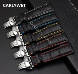 Real Calf Leather 20mm Watch Band Strap Black with Deployment Clasp Compatible with Role Omeg Seik Wrist Watches