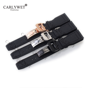 22mm Black Nylon Fabric Leather Band Wrist Watch Strap with Stainless Steel Deployment Clasp for IWC