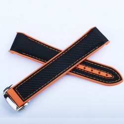 US Stock Tax-Free for Omega for Seamaster 600m 45.5mm 22mm Curved End Watch Band Black Canvas Orange Rubber Silver Polish Clasp